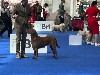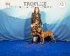 Sujet de bonne taille, compacte. Tête féminine. Pourrait avoir moins de babines. Excellent encolure. Excellente ligne de dos typique. Exc angulations AV et AR. Mouvements amples et dynamiques. Présentée en bonne condition.