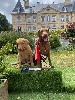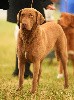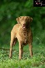 Rhéa est une belle Chesapeake Bay Retriever, bien construite, puissante, avec un superbe caractère. C'est une gentille chienne, très gaie et séductrice. Multichampionne et cotée 4 (lice recommandée), avec attestation internationale FCI de travail ( BICP cat 2 et bon en field trial), elle a aussi un bilan santé excellent avec dépistage des tares connues dans la race entièrement négatif.